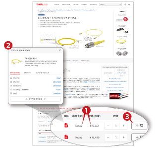 製品をカートに加えることで、簡単に見積もり依頼が可能です。お見積もりは当日もしくは翌営業日にお送りします。